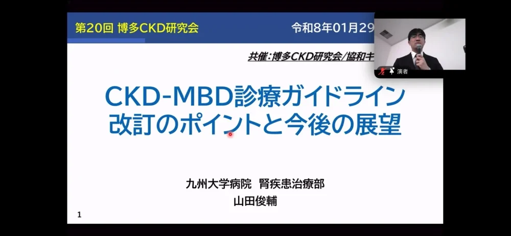 第20回 博多CKD研究会 開催記録 投稿者: 博多CKD研究会 運営2026年2月24日2026年2月24日お知らせ、主催研究会 第20回 博多CKD研究会 開催 記録 第20回 博多CKD研究会は多くの皆様に御聴講頂き盛会のうちに終了いたしました。御参加頂きました皆さまならびに御協力頂きました関係の皆さまのご協力に対し厚く御礼申しあげます 研究会の様子 参加者の声 第19回 参加者 職種別比率 私達はチームでのCKDへの取り組みを考えています。 看護師 53.8% 臨床工学技士 12.9% 管理栄養士 3.8% リハビリ関連 1.1% 薬剤師 1.6% 医師 7.5% MSW 5.4% その他 14%